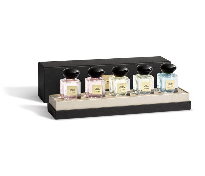 Eau Parfumée au Thé Vert: Bergamot, Cardamom, Lemon, Coriander, Orange Blossom, Mandarin Orange. Jasmine, Lily-of-the-Valley, Bulgarian Rose. Green Tea, Musk, Cedar, Sandalwood, Precious Woods, Amber